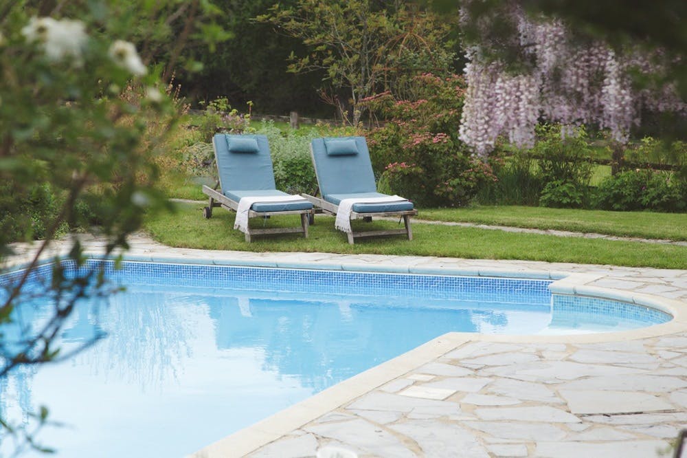 The gardens surrounding the cottage are carefully designed to provide interest throughout the year. Early spring bulbs and blossom are followed by vibrant summer colours and scent. The surrounding trees and shrubs have autumn tints and late perennials flower until the first frosts. The pool shelters beside the cottage, enclosed by well-stocked borders. There are seats and sun loungers from which you can enjoy a dreamy dip and relish the peace and quiet.