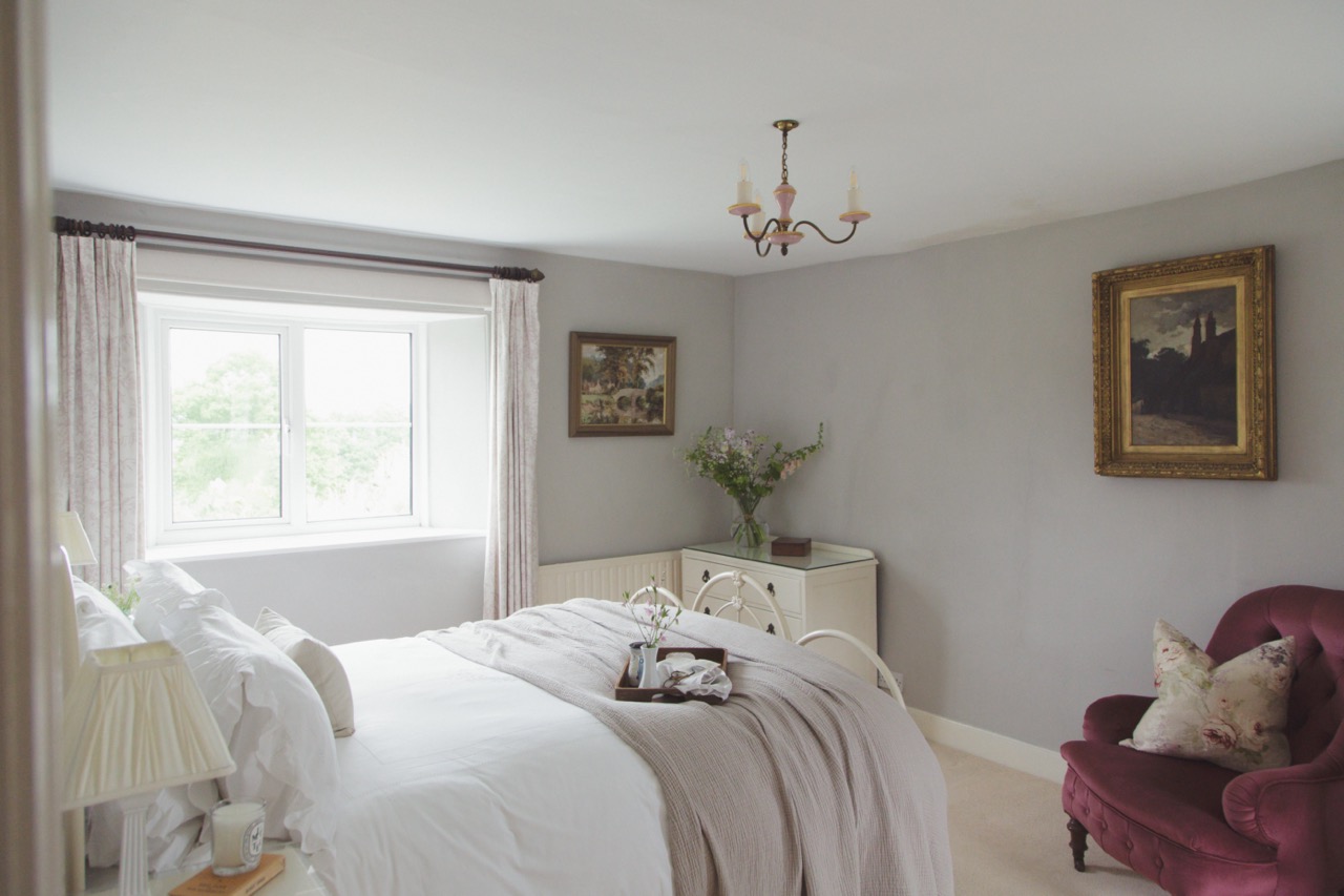 From each bedroom window you can look down over the front garden and beyond to a patchwork of fields, towards distant hills.